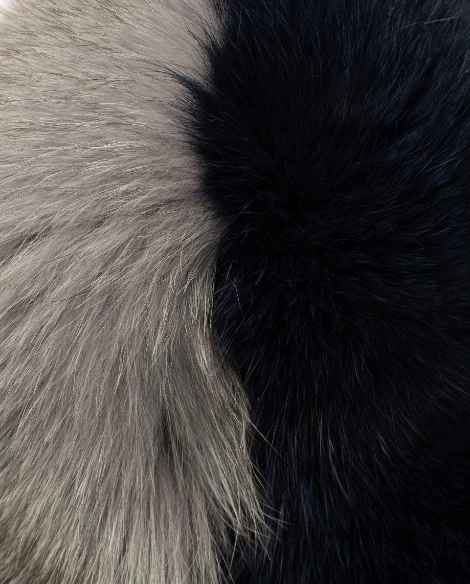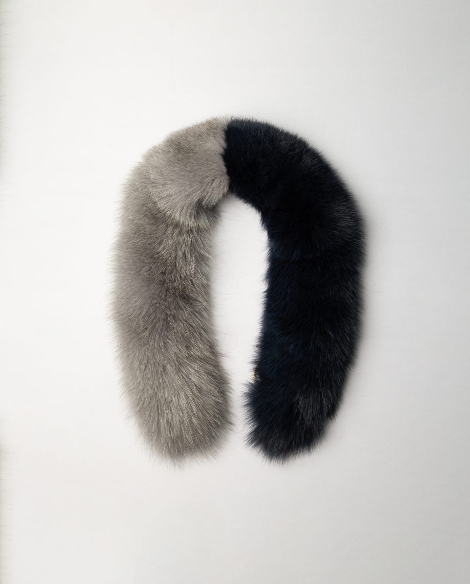Cuello redondo de pelo de zorro bicolor en color azul marino y gris con cierre de ojal. Confeccionado en España con pieles de calidad Saga.